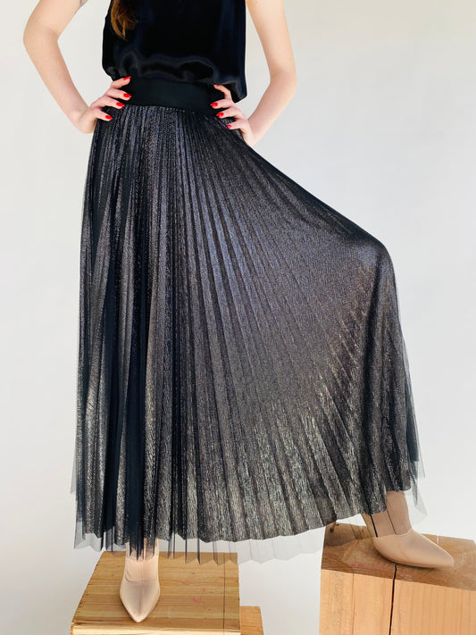 metallic pleat skirt silver with overlay